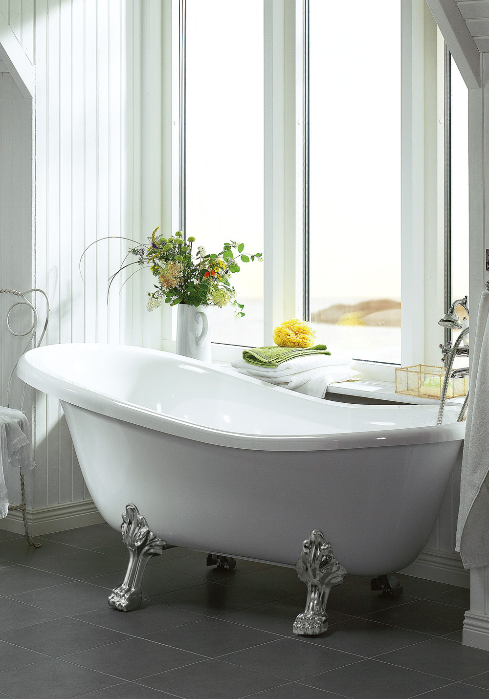 Et støbt marmorbadekar har et overfladelag, hvor snavs og lignende let kan fjernes ved hjælp af en blød klud og et let flydende, miljøvenligt rengøringsmiddel. Brug ikke skrubbebørster og skurepuder, der matter materialet og forårsager ridser for at vedligeholde overfladelaget. Behandl badekarret med Clean & Shine Bathroom 4-6 gange om året, så det forbliver blankt og vandafvisende. Hvis badekarret skal være ridset eller beskadiget, kan du slibe forsigtigt med blødt sandpapir # 600-1200. Brug derefter blødt sandpapir # 2000 og vand til fint sand. Til sidst poleres og en blød klud til en sidste polering. I tilfælde af større skader kan der købes reparationssæt. Brug ikke rengøringsmidler og produkter, der indeholder slibemidler, syrer, ammoniak, acetone eller andre kemikalier (såsom skurepulver, hårspray, hårfarve, blegemiddel, hårfjerner og neglelakfjerner osv.). Hvis et af ovenstående stoffer havner på produktet, skal det straks fjernes for at undgå skader. Sørg for at undgå skarpe værktøjer i nærheden af karret for at undgå at beskadige produktet.