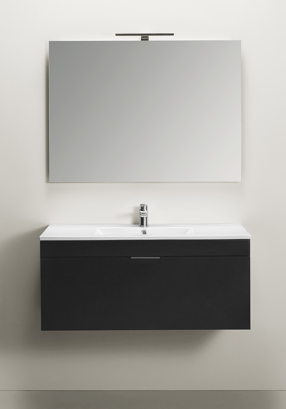 Underskab Go 1 Skuffe Med Håndvask Og Spejl Sort 1000