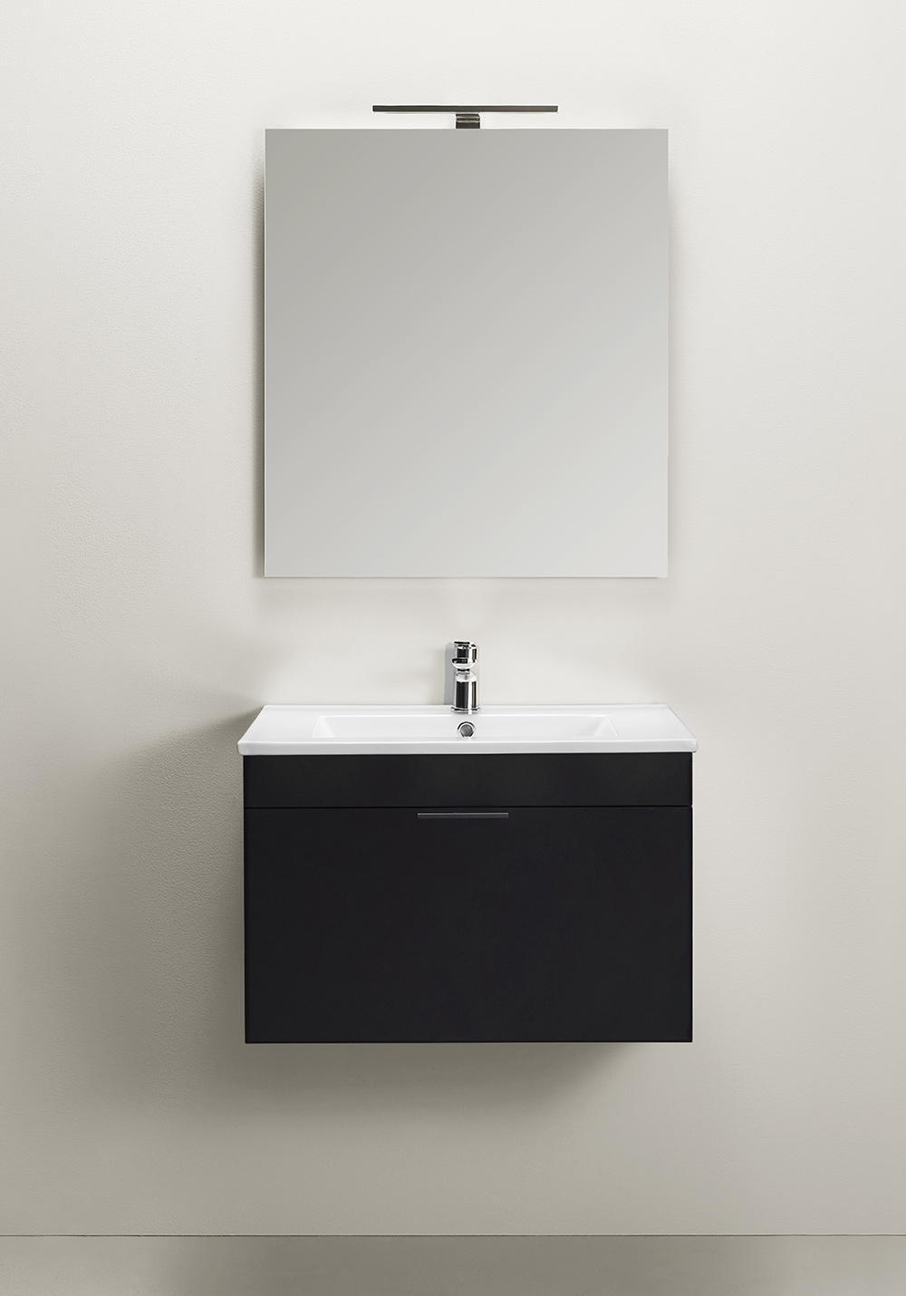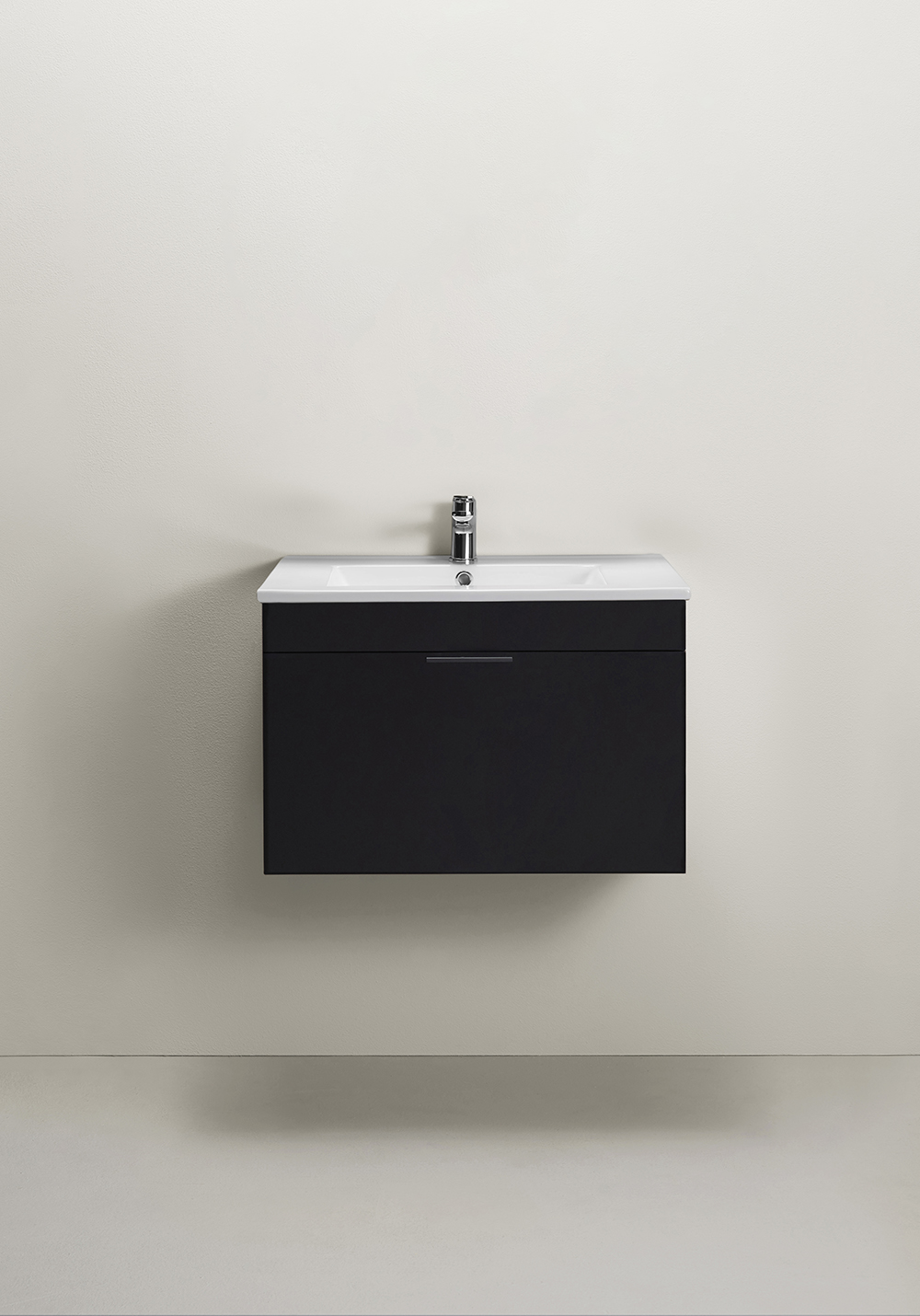 Skab til håndvask med mat hvid eller sort lak eller hvid højglans og med skuffe med dæmpet lukkefunktion, som har masser af opbevaringsplads. Fås i to forskellige dybder. Nemt at installere for én person med vægskinne. Forberedt til både væg- og gulvafløb bagpå, hvilket gør monteringen nem. Justerbare ophængsbeslag. Suppler med en håndvask og PUM-vandlås til kommode, varenr. 126 56 00. Skab din personlige stil med et af vores håndtag eller knopper.