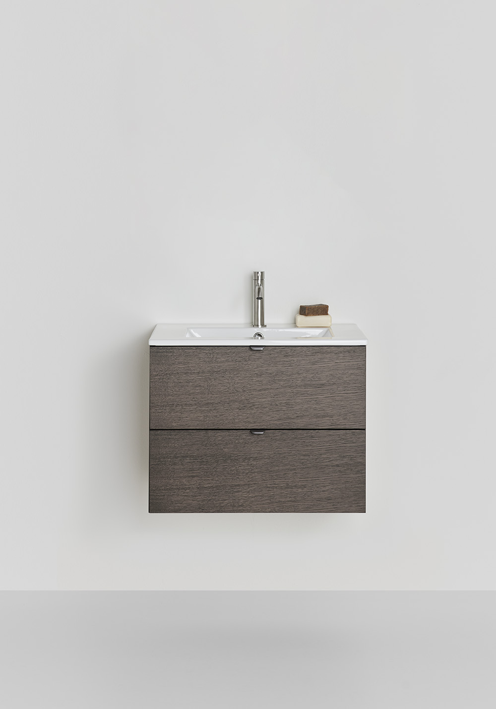 Hafa Go underskab med porcelænsvask er praktiske og stilrene badeværelsesmøbler med glatte fronter og med mulighed for at sætte din egen stil og præg gennem at vælge vores håndtag. To skuffer med SoftClose og fuldt udtræk giver et godt overblik over indeholdet.