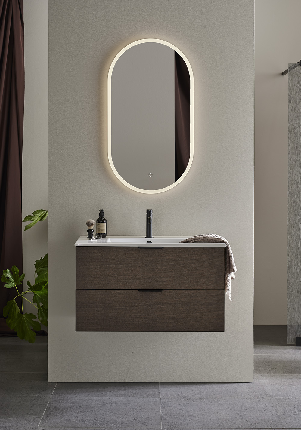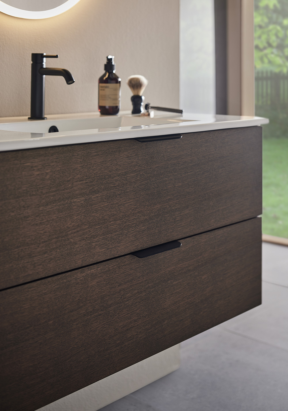 Hafa Go badeværelsesskab fås i flere forskellige størrelser og farver, enten med en matlakeret overflade eller en matlakeret overflade i finér. Underskabet leveres færdigmonteret og er nemt at installere med hjælp av en vægskinne og justerbare ophængsbeslag. Skabet er forberedt for væg- og gulvafløb. Vask, håndtag, vandhane, bundventil, vandlås og stikkontakt sælges separat.