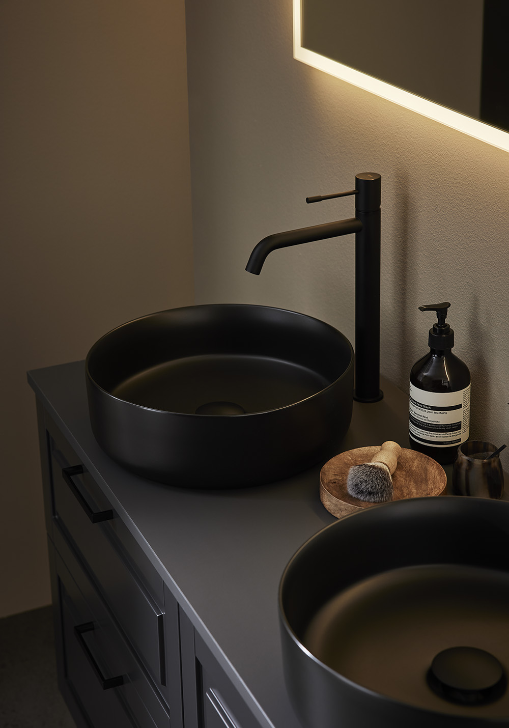 Hafa Grace er et badeværelsesmøbel med smukt profilerede fronter designet til at passe ind i både et landligt og et moderne badeværelse i skandinavisk stil. Skuffer med Softclose og fuldt udtræk giver et godt overblik over indholdet. Skuffemåtter og skuffeindretning i bambus hjælper med at holde orden. Underskabet er færdigmonteret og nemt at montere med justerbare ophængsbeslag og klargjort til både væg- og gulvafløb. Grace underskab fås i flere bredder fra 600 op til 1200 og i to matte farver - hvid og antracit. Sidemodulet og modulets låge kan monteres i højre eller venstre side. Vælg et håndtag eller knop, der passer til din stil, og suppler den med en fritstående vask på en bordplade eller nedsænket porcelænsvask. Køb til vandhane, bundventil, vandlås, skuffebelysning og stikkontakt.