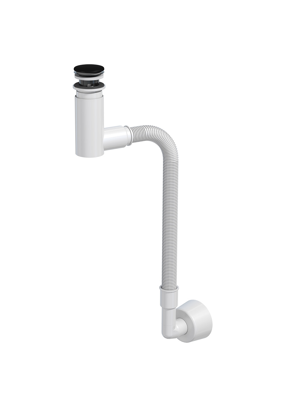 EASY CLEAN er et komplet vandlås-sæt til håndvaske med overløbsbeskyttelse, inklusive pop-up bundventil og fleksibelt afløbsrør. Sættet er nemt at rengøre:, løft vandlåsen op af bundventilen og rengør den.