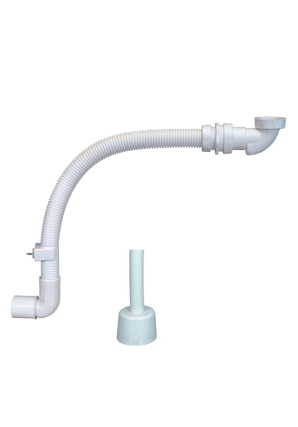 Afløbssæt til håndvaskskab, som optager lidt plads og giver mere plads til opbevaring. PUMmembranen forhindrer, at lugt fra afløbets spredes. Kan tilsluttes til både gulv og væg.