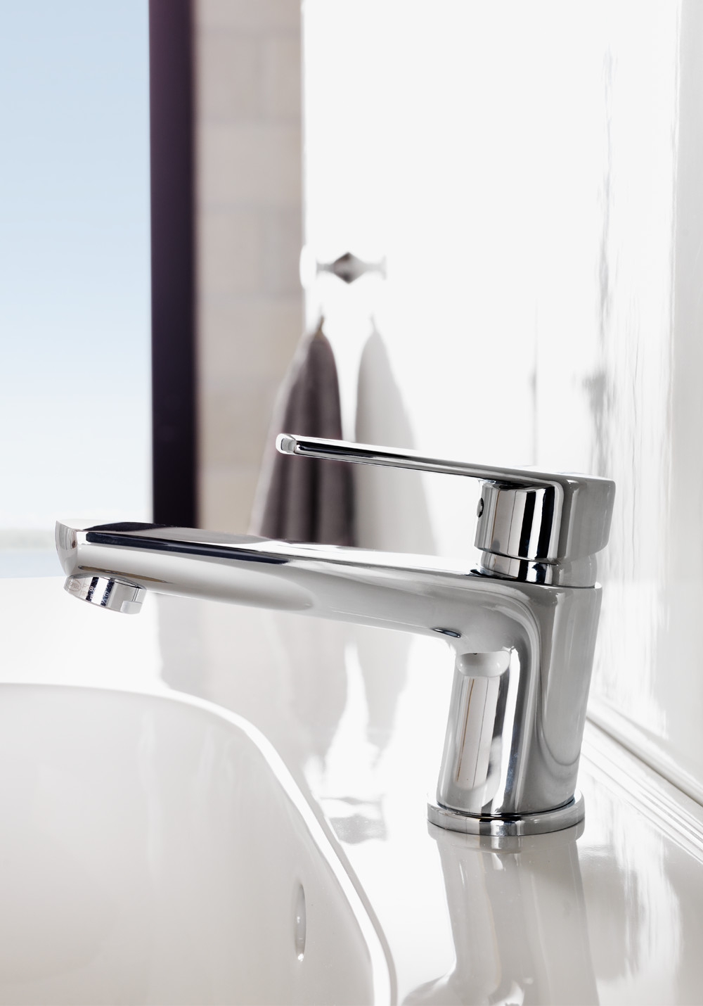 Håndvaskbatteri i forkromet messing. Nu med Water Save – Vandbesparende perlator, som gør, at du bruger