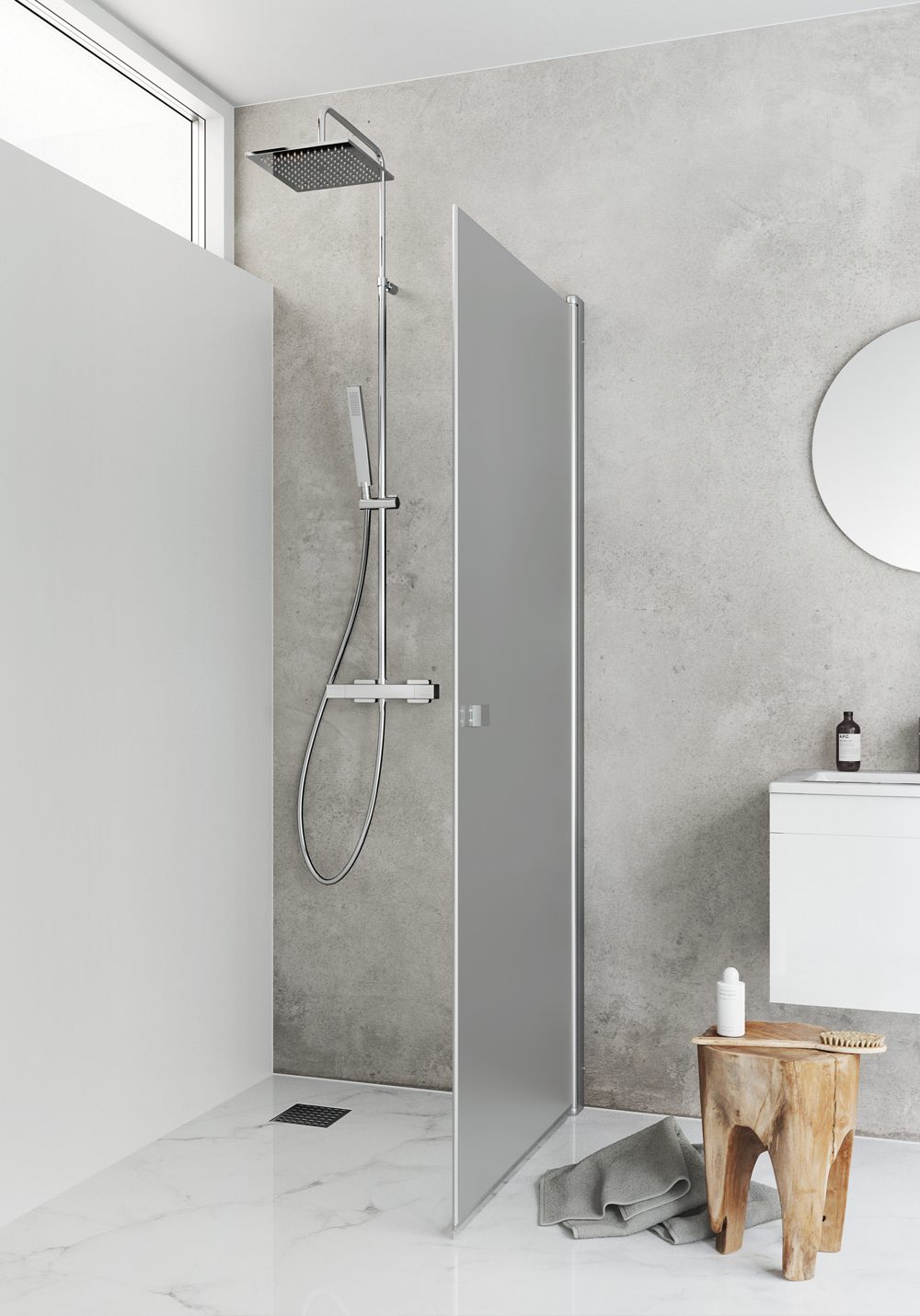 for én person, InstaQuick™. 6 mm hærdet sikkerhedsglas.