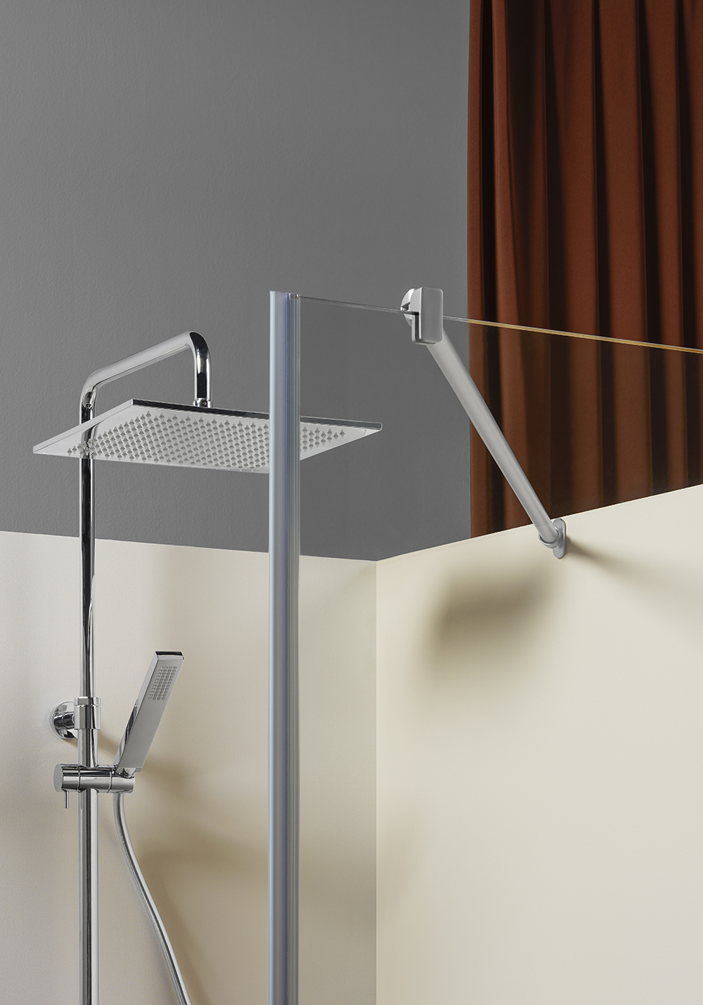 - Til væggen kan forlængerprofil til påbygningsrør tilkøbes