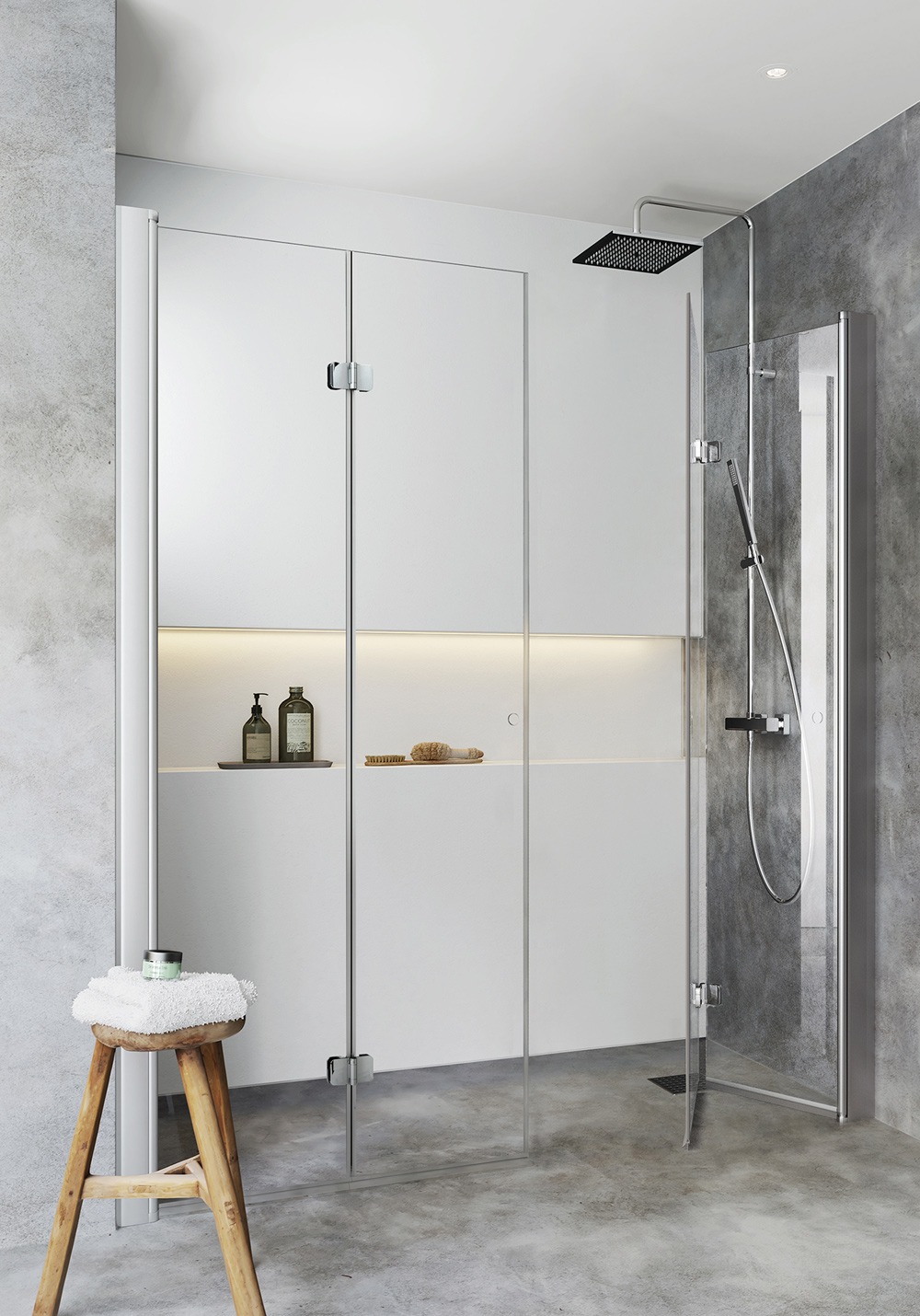 Bruseniche med to monteringsvenlige svingbare lige brusedøre med limbare profiler i aluminium. Nemme at installere og justere for én person, InstaQuick™. Vendbare til højre- eller venstremontering. 6 mm hærdet sikkerhedsglas. 8 mm frihøjde fra gulvet. Kan monteres med udvendige 12-mm-rør, cc 35 mm. 22 mm glideskinne medfølger. For nicher med nedenstående dimensioner skal du komplettere med en forlængelsesprofil på den ene eller begge sider. En profil bygger 30 mm.