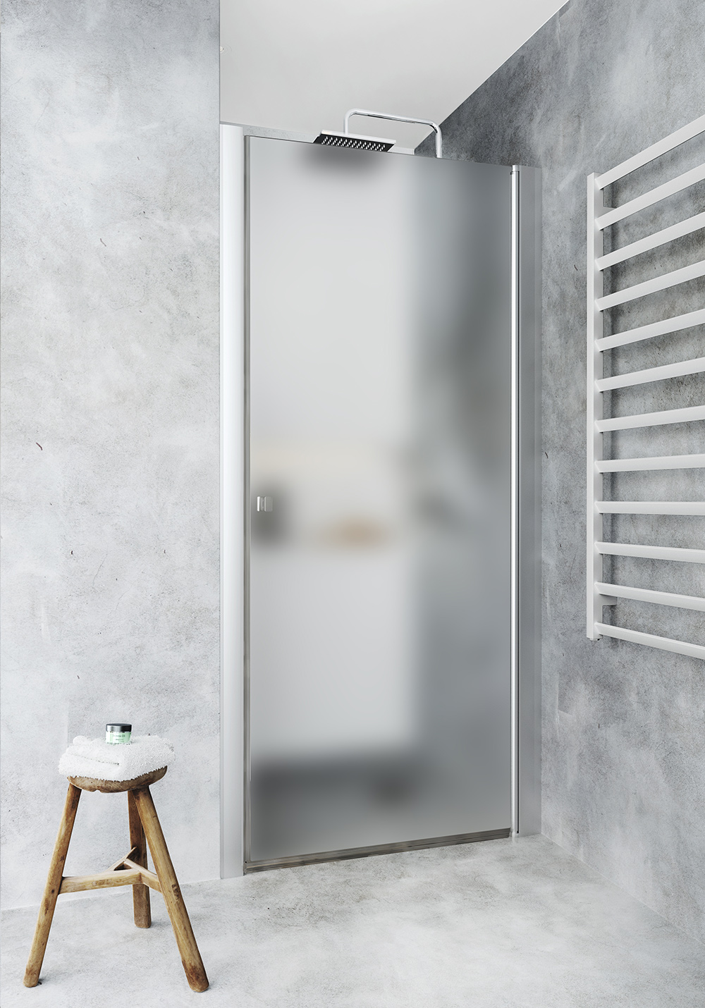 Monteringsvenlig lige brusedør med limbar profil i aluminium.