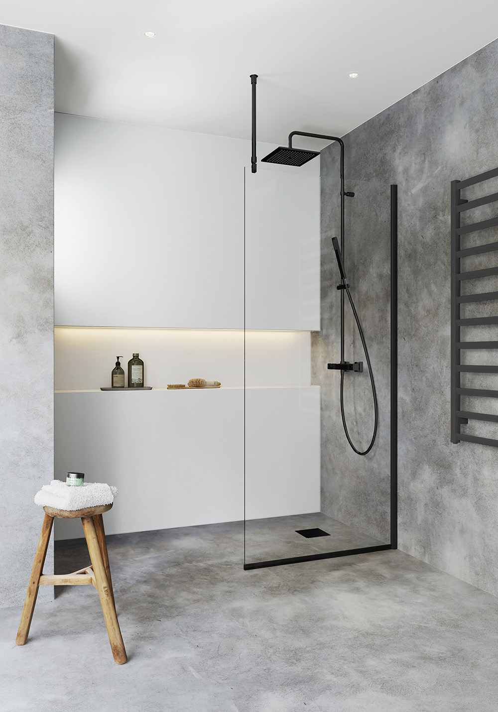 Brusevæggen er vendbar, så du kan vælge, hvilken væg den skal installeres på. Brusevæggen kan kombineres med et brusebadforhæng eller med døre i IglooPro-serien. Ved udvendig rørføring skal der købes en forlængelsesprofil. Monteres med skruer eller lim. Køb en loftbruser eller et brusebadssæt samt en termostatblander.