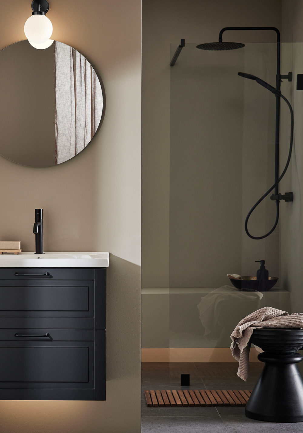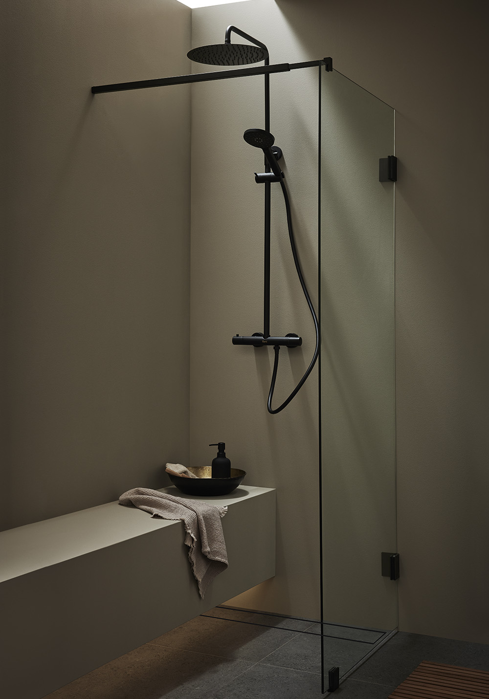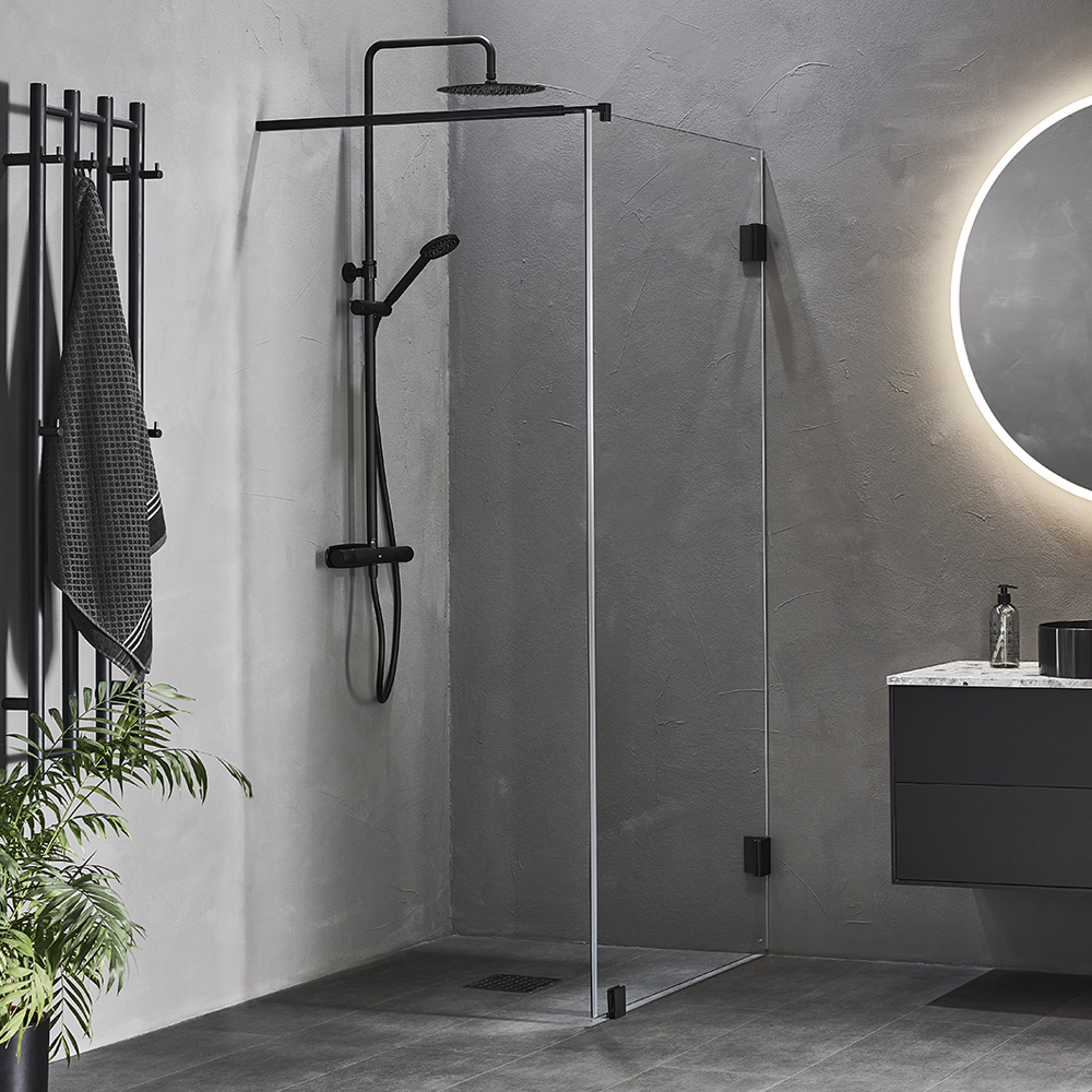 En eksklusiv brusevæg med slanke beslag og en elegant forhængsstang. Vælg mellem tre farver, krom, mat sort eller børstet messingsfarve. De store glasoverflader giver et luftigt indtryk og skaber en dejlig plads i badeværelset. Væggen er vendbar, så du kan vælge, hvilken væg du vil installere den på. Brusevæg kan kombineres med døre i Infinity-serien eller suppleres med et smukt badeforhæng for at skabe et hyggeligt og luksuriøst bad. Husk, at Infinity ikke har gulvlister som standard, så et korrekt gulvfald bliver ekstra vigtigt. 8 mm hærdet sikkerhedsglas. Magnetliste inkluderet. Fuld højde 2000 mm og med 8 mm hærdet klart sikkerhedsglas.