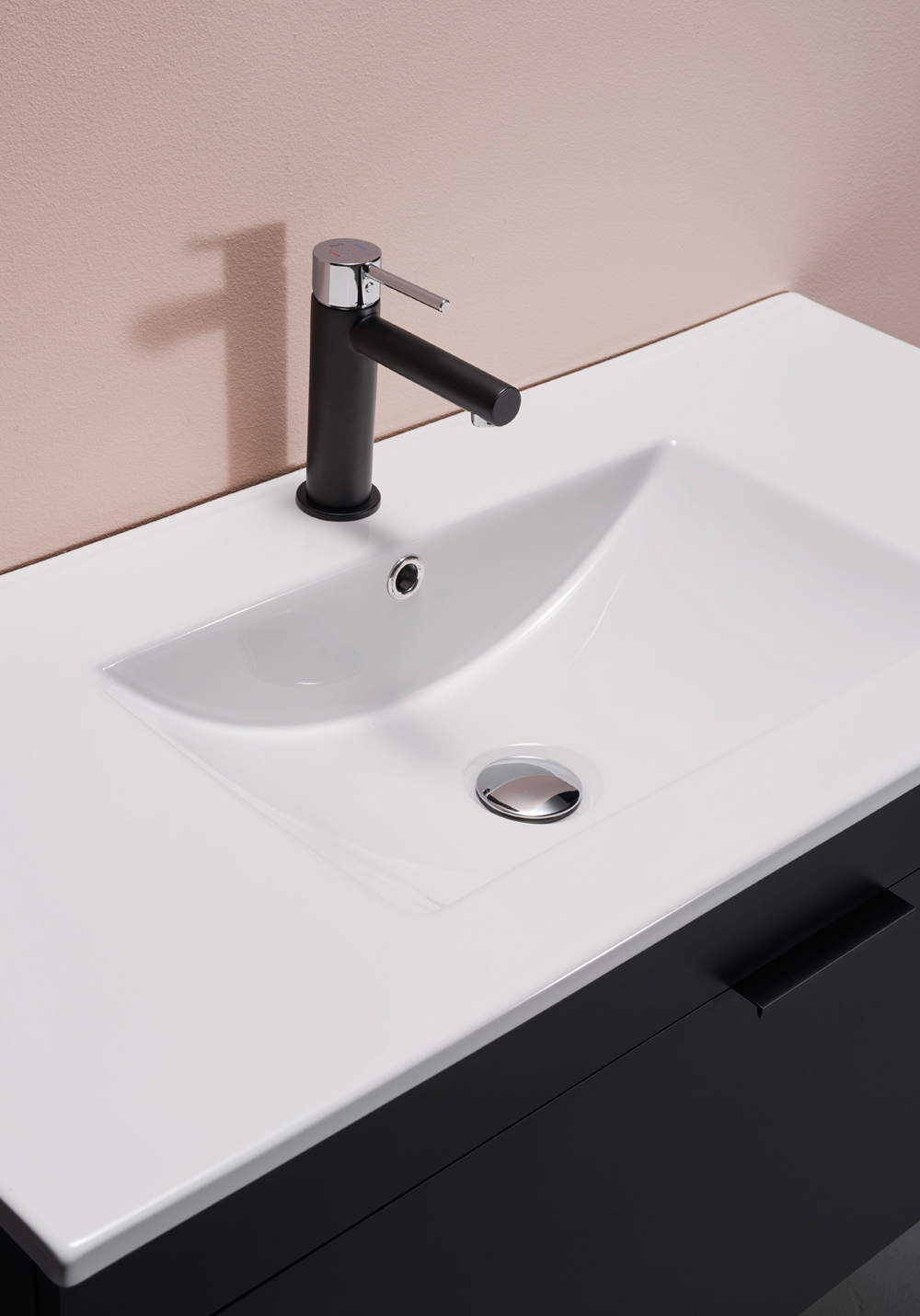 Håndvask i porcelæn med tynd kant, rektangulær form og stor volumen, god opbevaringsplads og overløb. Køb til bundventil tilegnet vask med overløb. De fås i flere farver, der matcher dit armatur.