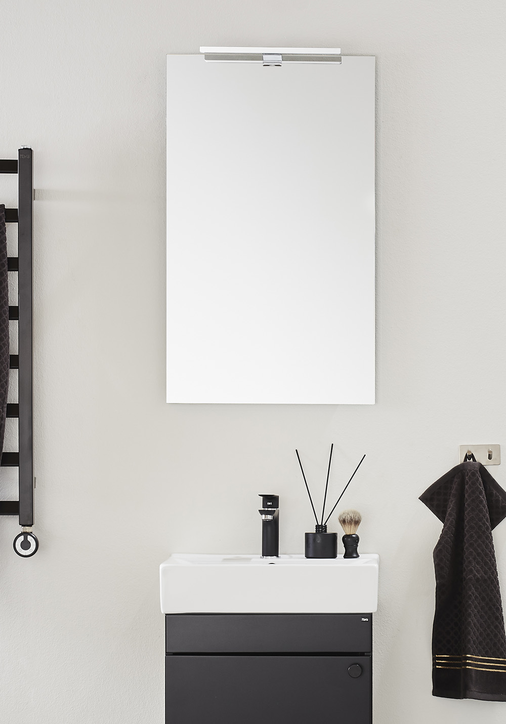 Stilrent spejl med justerbare, skjulte ophængsbeslag, som gør det nemt at montere. Tilkøb en Go LED-lampe, 126 72 70.