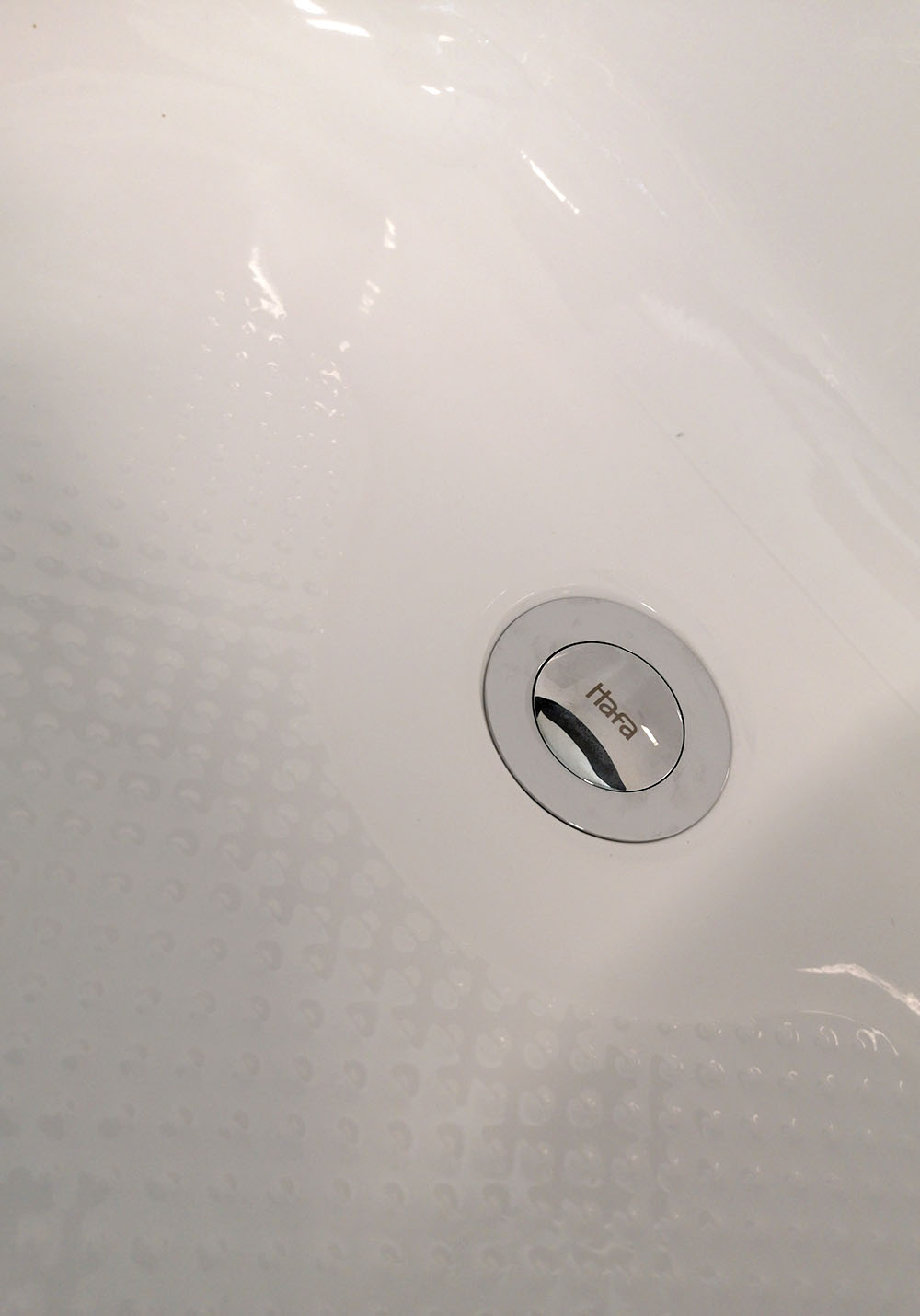 Et rektangulært og minimalistisk badekar i sanitetsakryl. Leveres med bundventil, rustfrit stativ og med justerbare fødder. Front og gavl medfølger.