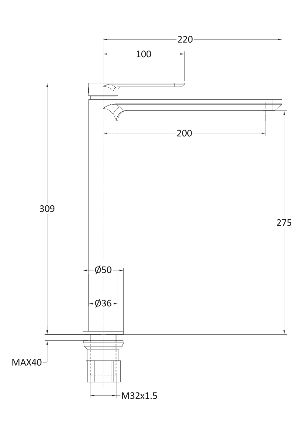 Højde til tud (mm)