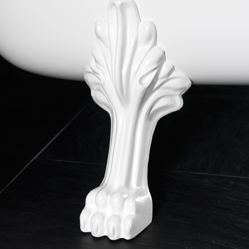 Hvide løvefødder til badekar, høj model. Passer til badekarene Madeleine, Victoria og Queen. Badekarret har 2 stk høje fødder og 2 st lave fødder. Lave fødder findes på art nr. 80051210. Sælges i par