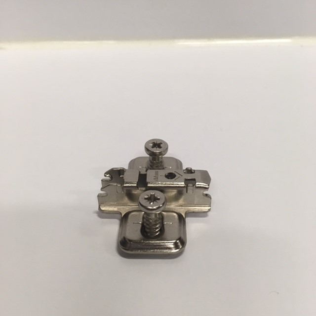 Bundplade, høj model til hængsel. Passer til Blum hængsel med art nr. 92023331. Til højskab, vægskab og vaskeskab.