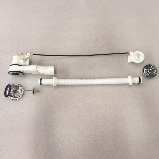 Afløbsset til massagebadekar med sug i bundventilen og limet slangesystem.